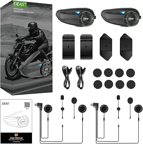 OBEST Interfono Moto Bluetooth,Cuffie Casco per Moto,Mesh 3.0, Supporto per 6 Citofoni di Gruppo Entro 1000 m, Condivisione di Musica, Citofonia, per Ciclismo, Sci