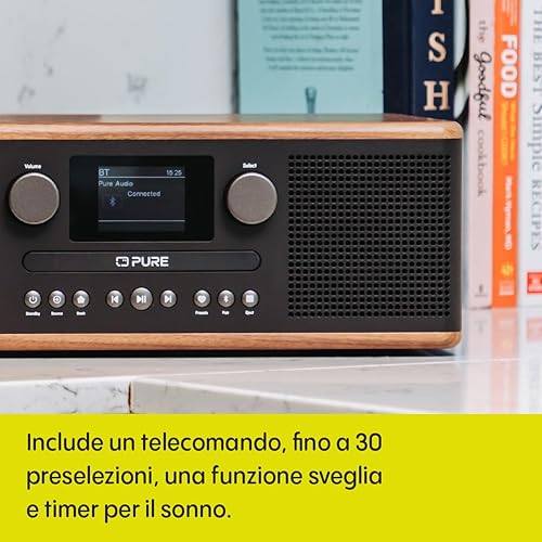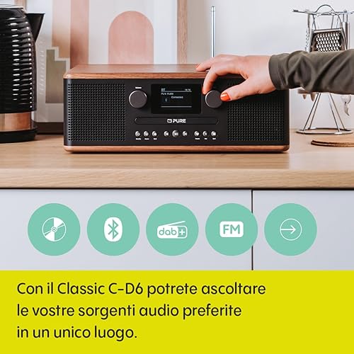 Pure Classic C-D6 Sistema Musicale (Lettore CD, DAB+/FM, Bluetooth, AUX, USB, Sveglia/Timer per il Sonno) Caffè Nero/Noce