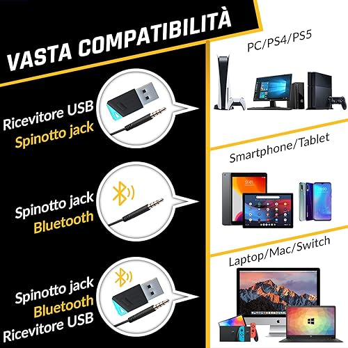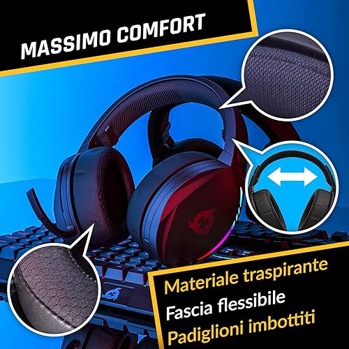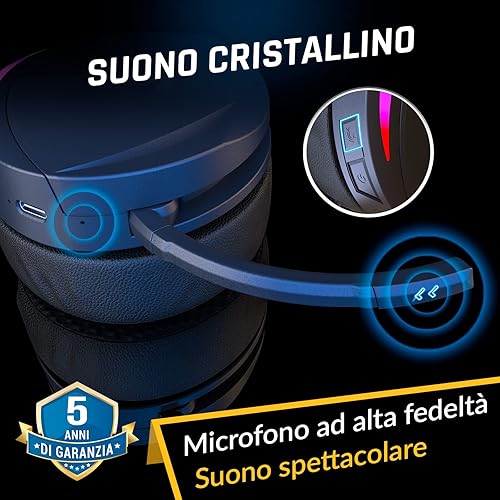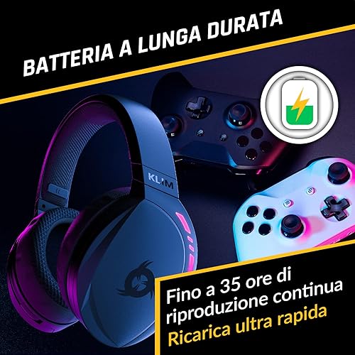 KLIM Panther Cuffie Gaming Wireless per PS4 PS5 Switch PC, Over Ear Bluetooth con Cancellazione del Rumore e Microfono + Compatibili 3D Audio + Cuffie da Gaming RGB