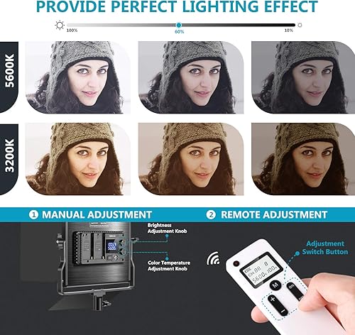 Neewer 2 Pacco Kit di illuminazione Avanzata per Video 2,4G 660 LED, Pannello LED Bi-colore Dimmerabile con Schermo LCD Telecomando 2,4G Supporto di Luce per Fotografia di Ritratto Prodotto