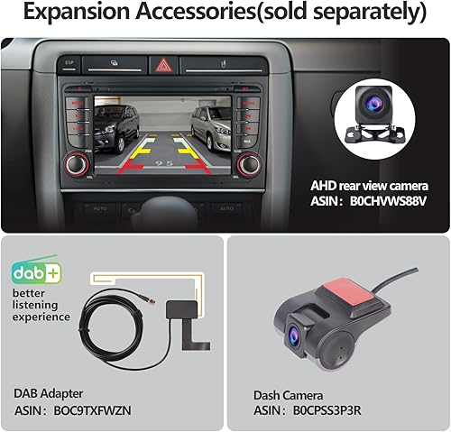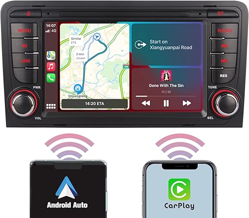 Autoradio per Audi A3 S3 RS3 2003-2012 Compatibile con Wireless CarPlay Android Auto, ricevitore per radio auto a touch screen da 7 pollici AM/FM/Bluetooth/USB