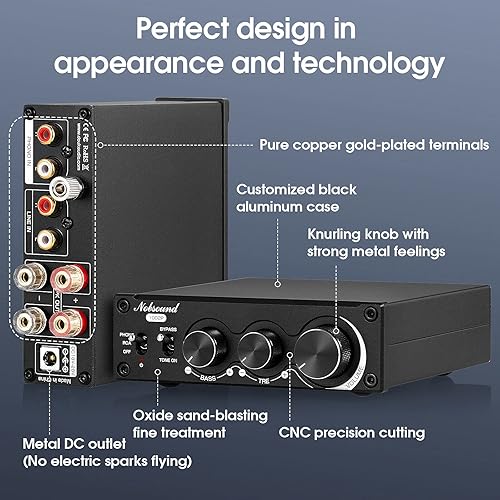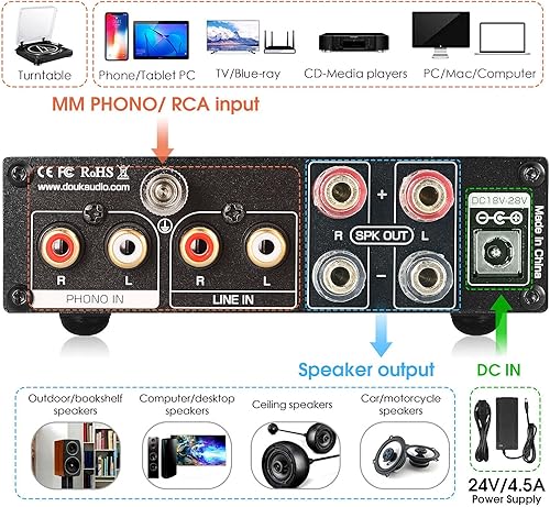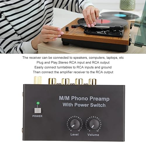 Preamplificatore Fono, Preamplificatore per Giradischi Fono PP500P, Preamplificatore Audio con Adattatore DC 12V, per Giradischi, Giradischi