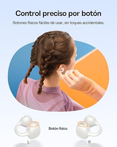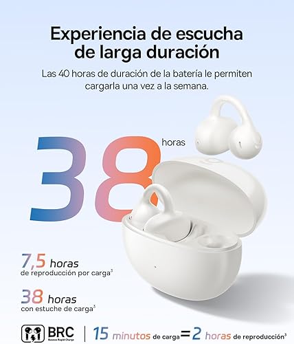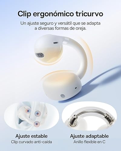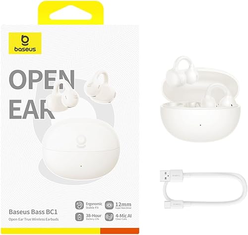 Baseus BC1 Écouteurs à oreille ouverte, clip oreilles, son impressionnant, basses adaptatives, Bluetooth 6.0, réduction de bruit en appel, IP55, 38h autonomie, légers - Blanc Doux