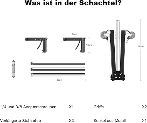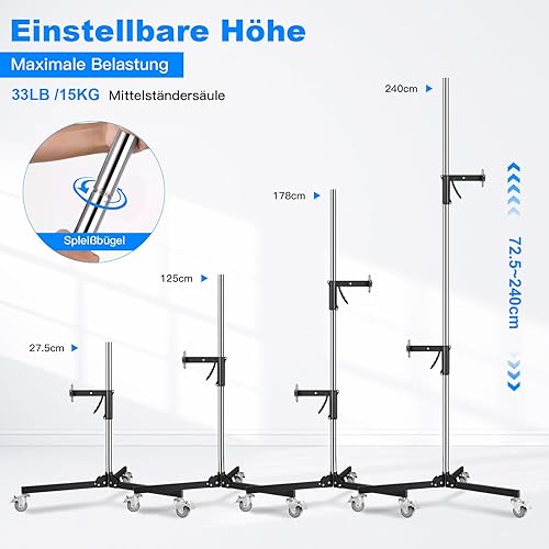 Metal Heavy Roll Stand Studio Stand 240cm Robusto Stativo Fotografico con ruote per treppiede e kit di 2 maniglie scorrevoli,capacità di carico massimo 15kg per Monolight Softbox Reflector