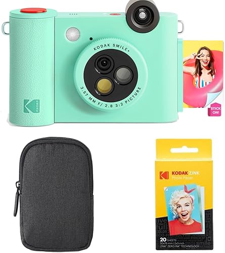 KODAK Smile+ 2-in-1 Fotocamera Digitale & Stampante Foto Bluetooth - Pacchetto Iniziale + Custodia + Carta Zink 20pz - 10MP - Blu