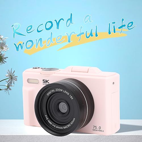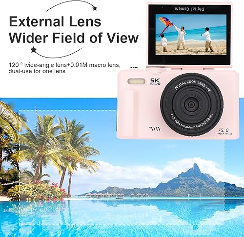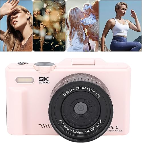 Camera Digitale 5k, Videocamera WiFi a Fuoco Automatico con Zoom Digitale 18x, Schermo di Lancio da 3 Pollici a 180 °, Fotocamera Vlog da 75 MP per Fotografia, Luce di