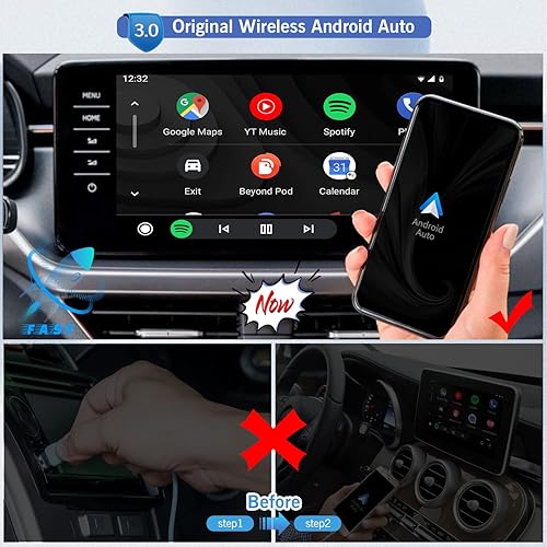 OTTOCAST A2Air Wireless Android Auto Adapter - 13s Auto-Connect Fast Speed, Upgrade Android Auto Adaptador inalámbrico para automóviles con Android Auto cableado de fábrica