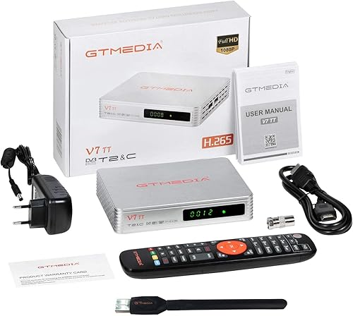 Decoder DVB-T2 HD GT MEDIA V7 TT Full HD 1080p Ricevitore Digitale Terrestre DVB-T2/C Cavo Ricevitore H.265 HEVC 10bit con Antenna WiFi USB/Ethernet, Supporto PVR Registratore Timeshift EPG