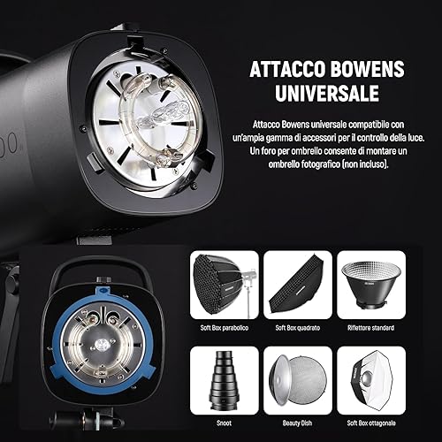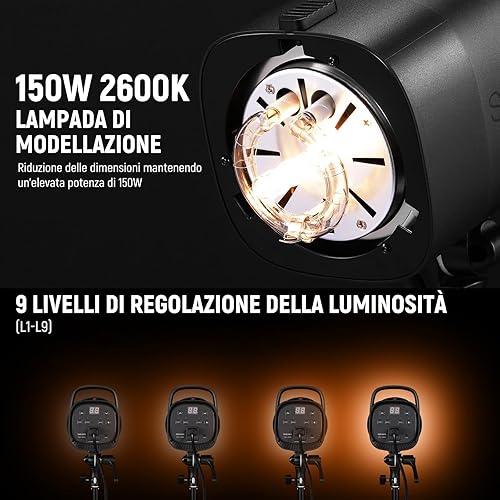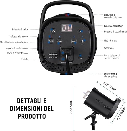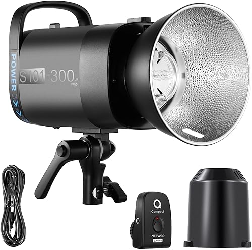 NEEWER S101-300W Flash Stroboscopico con 150W Lampada Pilota a 9 Livelli, 300W GN58 5600K con Riflettore con Bowens Mount, Ventola Silenziosa S1/S2, Flash da Studio per Fotografia Ritratti Prodotti