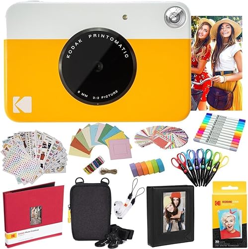 KODAK Printomatic Fotocamera istantanea (Rosa) Pacchetto all-Inclusive + Carta Fotografica Zink (20 Fogli) e Molto Altro