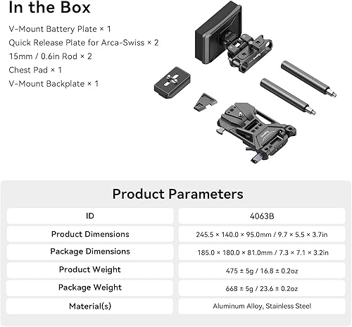 SMALLRIG Piastra Batteria con Attacco a V con Doppia Piastra a Sgancio Rapido per Arca, Piastra Batteria con Attacco a V Compatta e Pieghevole a Forma di L per DSLR, Gimbal e Treppiede - 4063B