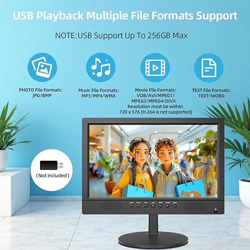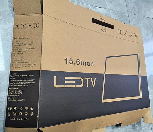 TV digitale 16 pollici Freeview, sintonizzatore DVB-T2, ingresso AV, HDMI/VGA, slot USB, alimentazione da auto (12 Volt) o da rete elettrica, telecomando,H.265