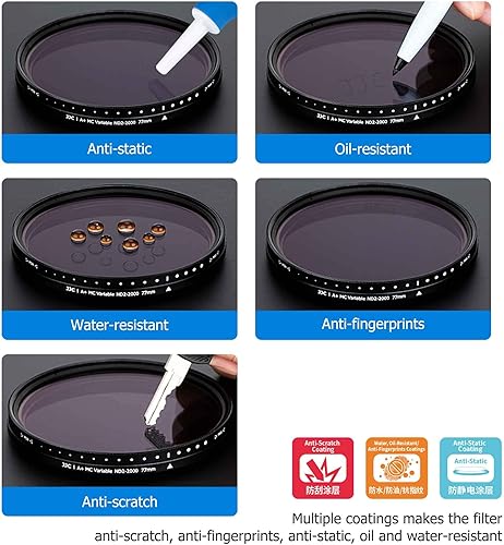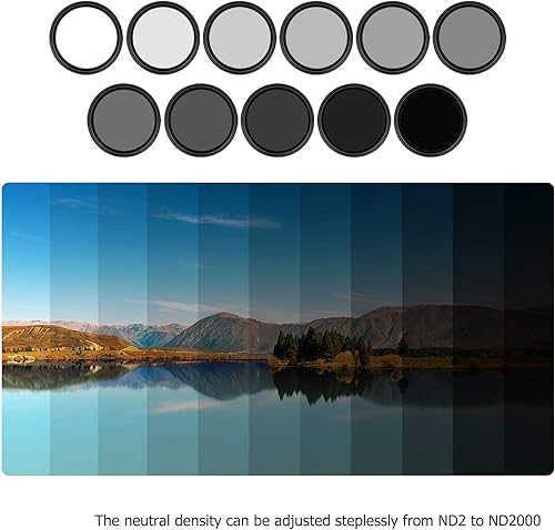 JJC Filtro ND variabile da 82 mm (ND2 - ND2000) Filtro per lenti a densità neutra regolabile, rivestimento a 18 strati, vetro ottico HD, per fotografia di paesaggi con obiettivo fotocamera DSLR