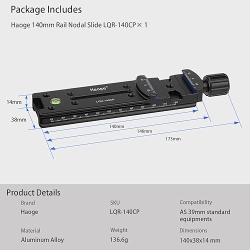 Haoge, piastra micrometrica scorrevole da 140 mm, con leva di bloccaggio in metallo a rilascio rapido, per fotocamera panoramica, in primo piano, fotografia macro, compatibile con Arca RRS Kirk