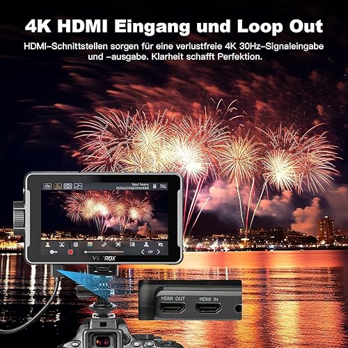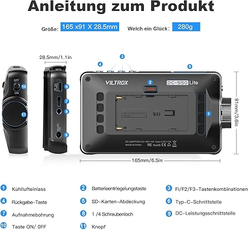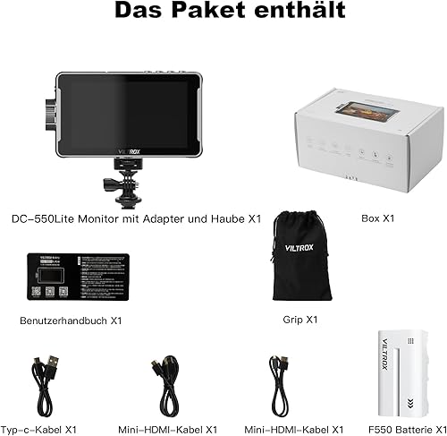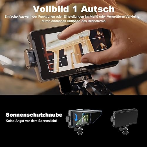 VILTROX DC550 Lite - Monitor da campo per fotocamera, monitor da 5,5 pollici, touchscreen 4K, HDMI, monitor da campo con cappuccio parasole, batteria, borsa per fotocamera Sony Canon Nikon