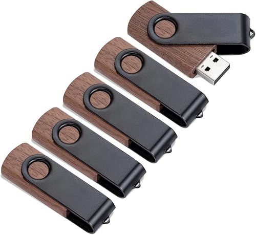 A Plus Pendrive in legno noce Set di 5 - Clip metallico rotante 360°, elegante e professionale per ufficio e fotografia (32, GB)