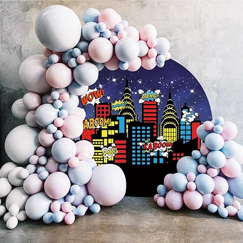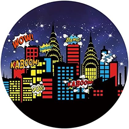 Aoihrraan 200cm Diametro Supereroe Città Rotondo Fotografia Sfondo Grattacielo Edifici Cielo Stellato Americano Comico Boom Cerchio Fondale Baby Doccia Neonato Compleanno Festa Ritratto Fotografico