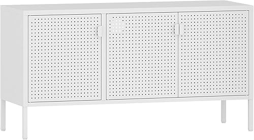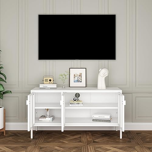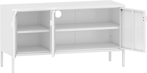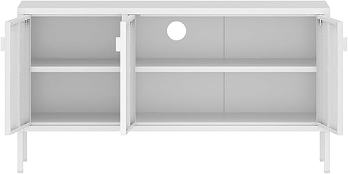 Mobile TV a 3 Ante Traforate Mobile Basso Porta TV con Foro Passacavi Stand TV Centri Multimediali 114 x 40 x 60 cm Bianco