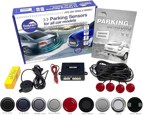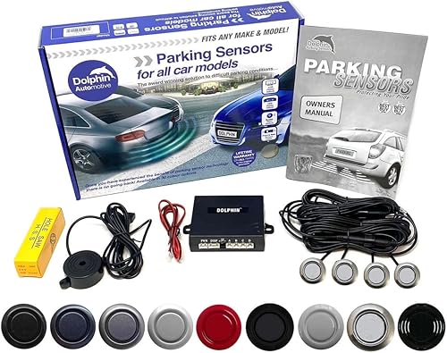 DMS400 - Sensori di parcheggio per retromarcia, 4 sensori posteriori con allarmi audio, marchio Auto Express premiato in 9 colori (grigio ferro)