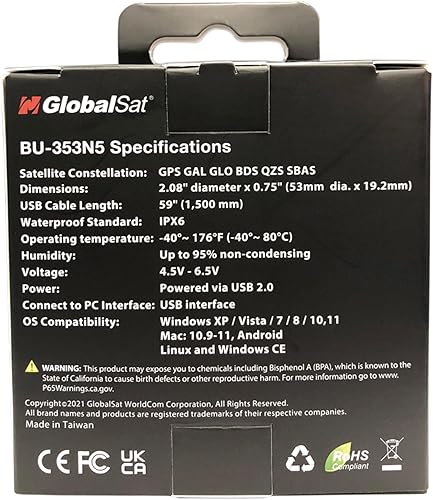 GlobalSat BU-353N5 Ricevitore GNSS USB, Nero