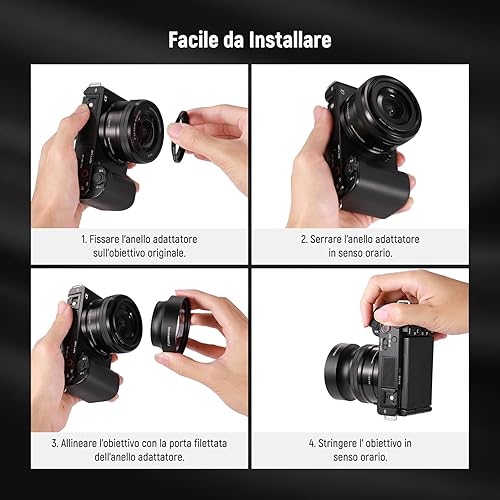 Neewer Obiettivo Grandangolare HD da 40,5 mm, 2 in 1 Obiettivo Aggiuntivo Grandangolare da 18 mm e Macro 10x con Tubo di Prolunga, Adattatore per Obiettivo con Attacco a Baionetta (LS-30, Nero)