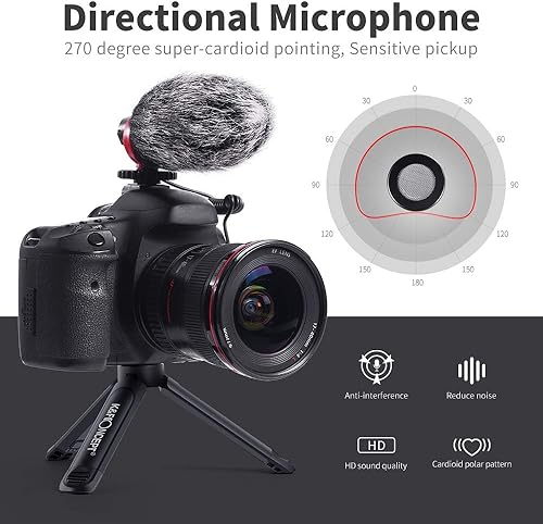 K&F Concept Microfono per Fotocamere CM600, VideoMicro Microfono Direzionale con Treppiede, Microfono Kit per Fotocamere, videocamere