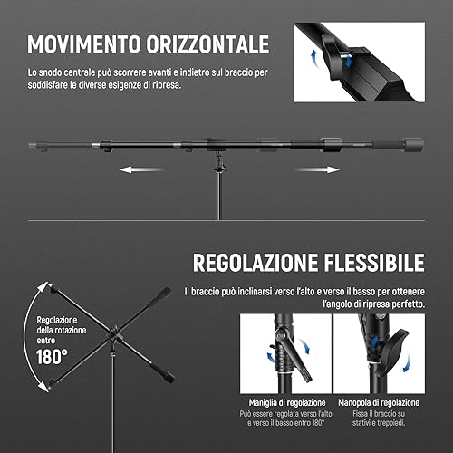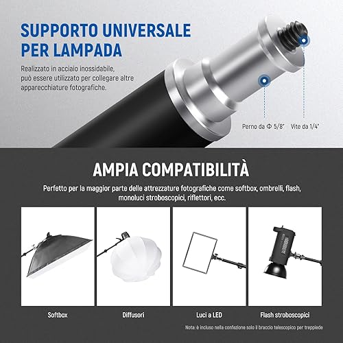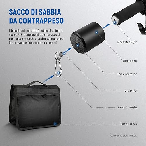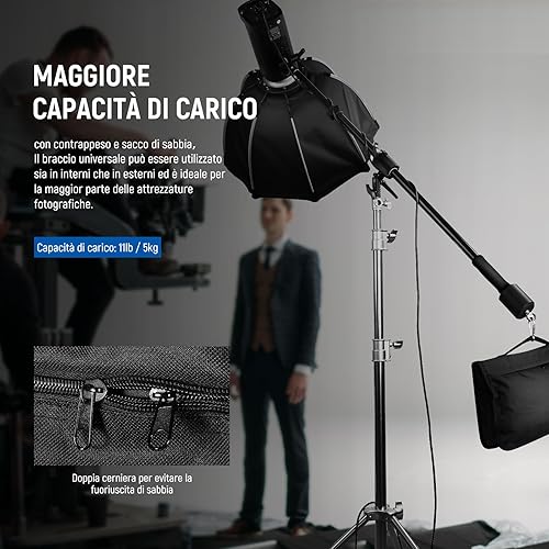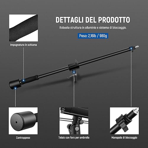 NEEWER Braccio Telescopico per Treppiede, da 89 a 155cm con Contrappeso da 1,5kg e Sacco di Sabbia, Vite da 1/4' Compatibile con Softbox, Luci da Studio, Flash, Ombrelli,Anelli luminosi,Carico Max 5kg