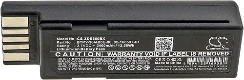 TECHTEK Batterie 3400mAh compatibile con [Zebra] DS3600, DS3678, EVM, LI3600, LI3678, LS3600, LS3678 sostituisce 82-166537-01, BT-000341-01, BTRY-36IAB0E-00 FBA