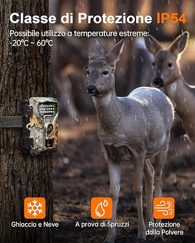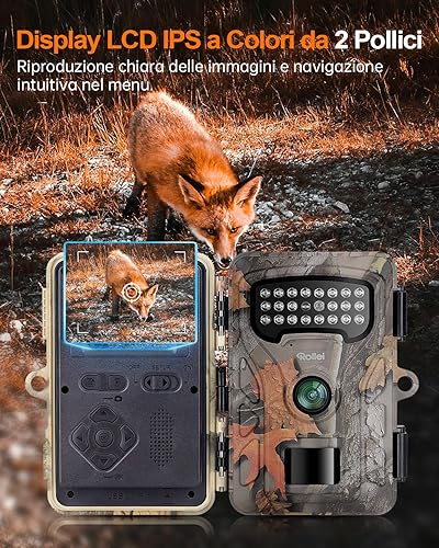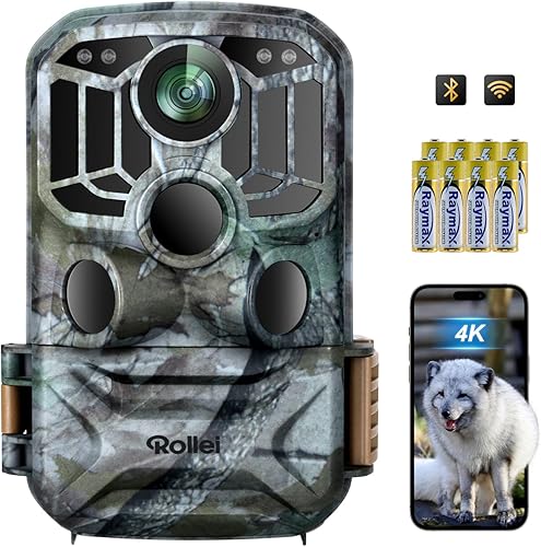 Fototrappola Rollei 4K WiFi, 48MP 4K Fototrappola Notturna Wifi con App e Sensore di Movimento Telecamera Caccia Notturna Infrarossi con Batteria e Schermo TFT-LCD da 2' Impermeabile IP65 per Animali