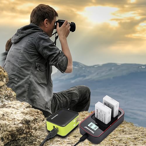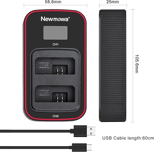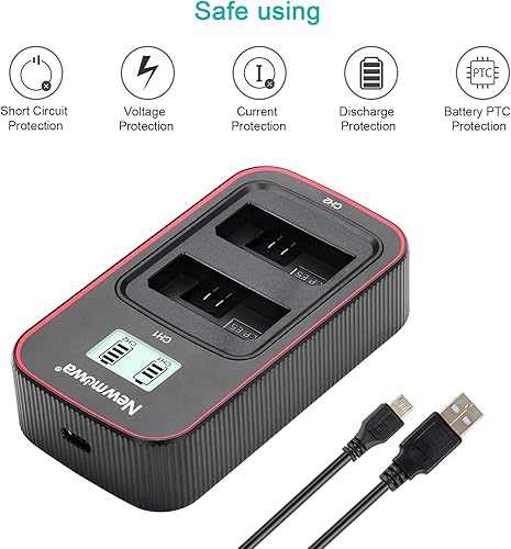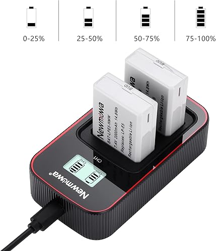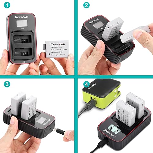 Newmowa LP-E5 Batteria di ricambio (confezione da 2) e display LCD intelligente Caricatore doppio USB per Canon LP-E5 e EOS Rebel XS Rebel T1i Rebel XSi 1000D 500D 450D Kiss X3 Kiss X2 Kiss F