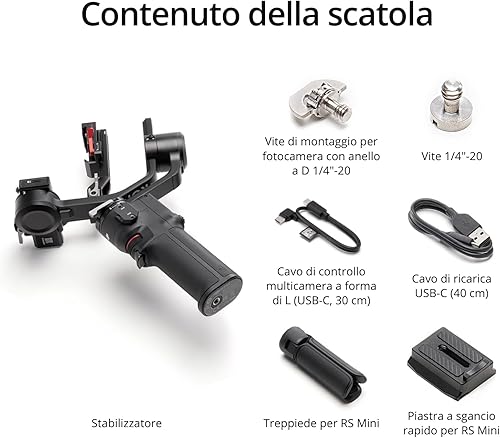 DJI RS 3 Mini, Stabilizzatore leggero a 3 assi per Canon/Sony/Panasonic/Nikon/Fujifilm, Carico utile testato di 2 kg, Controllo dell’otturatore a Bluetooth, Riprese verticali native