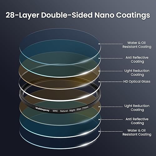 Walking Way 49mm Filtro Notturno Naturale per la Riduzione dell'Inquinamento Luminoso Vetro Ottico Nano-rivestito per Fotografia Notturna, Astrofotografia e Chiarezza delle Stelle
