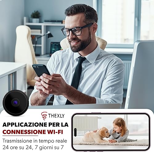 THEXLY Mini Telecamera spia nascosta HD wifi professionale - micro videocamera con sensore di movimento e visione notturna - Spy cam quadrata sorveglianza interno 1080p (NEW VERSION 2024)