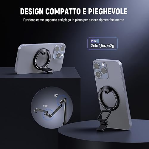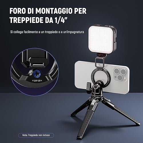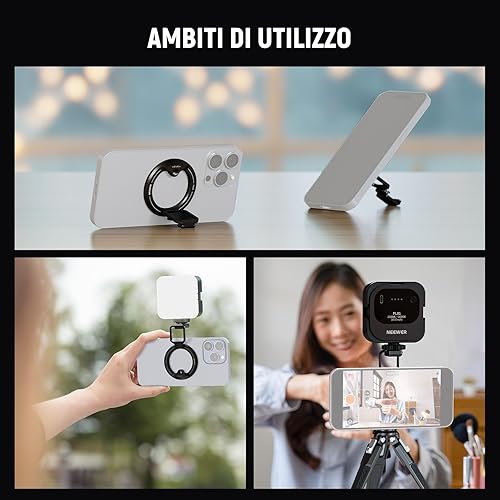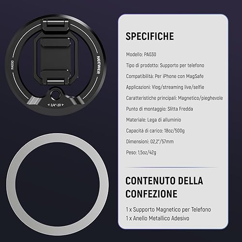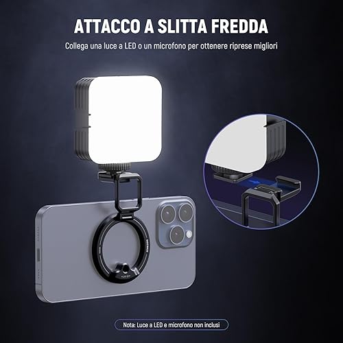 NEEWER Supporto Telefono Magnetico per Treppiede con Cold Shoe, 1/4' Filetto, Phone Rig Pieghevole Compatibile con MagSafe iPhone 16 15 Pro Max per Registrazione Video, Anello Adesivo Incluso, PA030