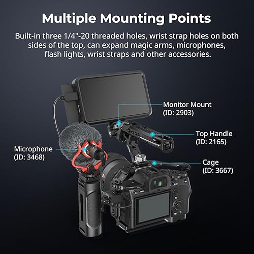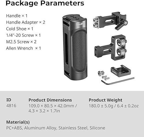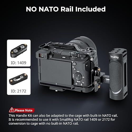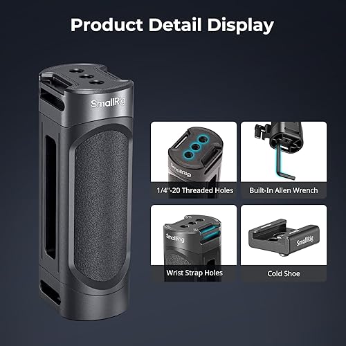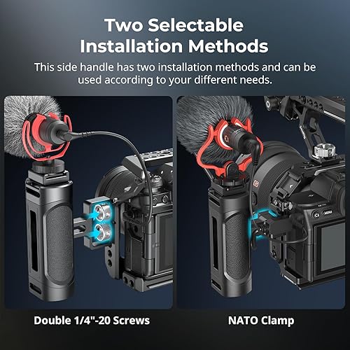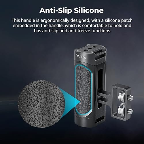 SMALLRIG Mini Side Handle con NATO e Adattatore per Vite da 1/4'-20, per Mano Sinistra o Destra, con Fori Filettati, Fori per Cinturino da Polso, Cold Shoe, Regolabile Su e Giù - 4816