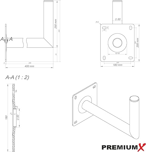 PremiumX Supporto da Parete in Alluminio da 40 cm con Grande Piastra di Montaggio per Antenne Paraboliche e Satellitari - Garantito per Sicurezza e Affidabilità