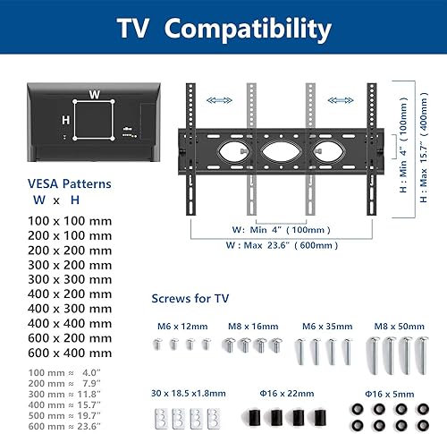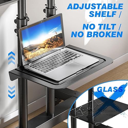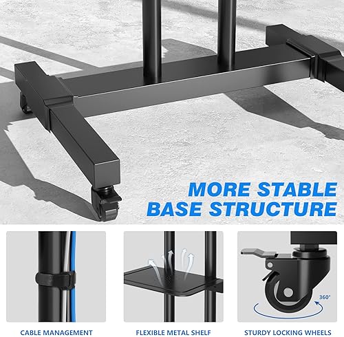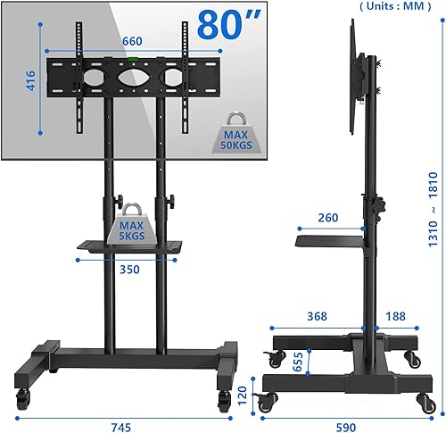 Supporto TV da Pavimento con Ruote Carrello Staffa Porta Mobile Stand Regolabile in Altezza, Supporto TV da Terra per 32 a 80 Pollici LCD LED Plasma Max. 50 kg, Max VESA 600x400 mm Nero
