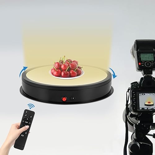 MEHOOSPVN Piatto girevole elettrico, 42 cm, 50 kg, piatto girevole automatico con telecomando, piatto girevole a 360 gradi, per fotografia, display con luce LED, nero