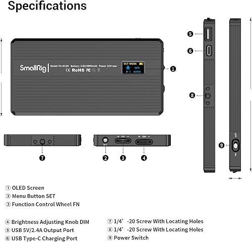 SMALLRIG Luce Video LED, RGB Video Light con Batteria Ricaricabile da 3800 mAh, Controllo Colore HSI Completo e Gamma CCT 2500K-8500K per Vlogger Content Creator - 3157