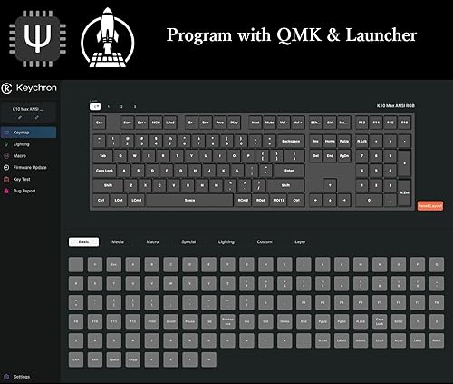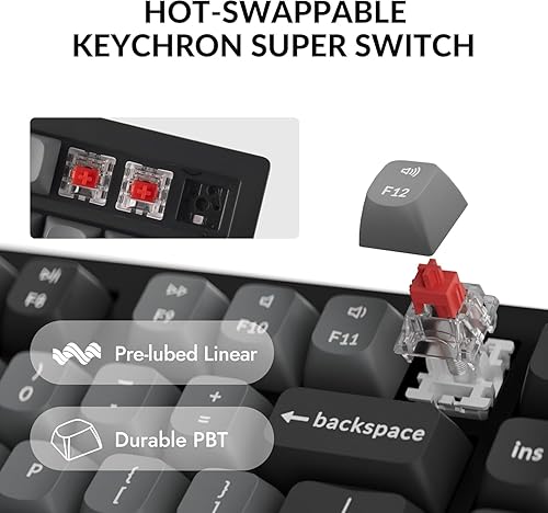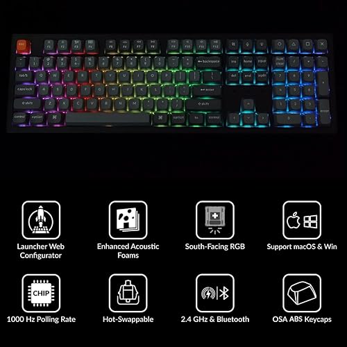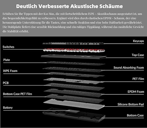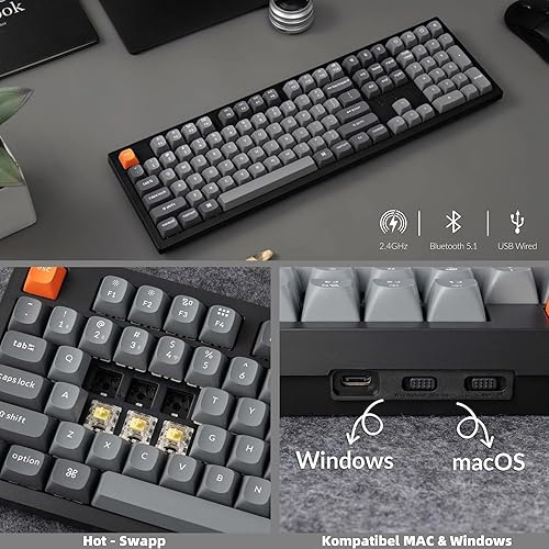 Keychron K10 Max Tastiera meccanica senza fili, DE-ISO 100% layout QMK 2,4 GHz Bluetooth Hot Swap RGB compatibile con Mac Windows Linux Red Switches