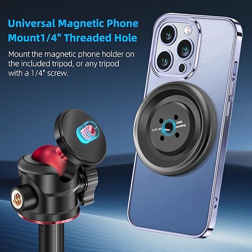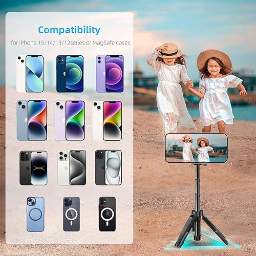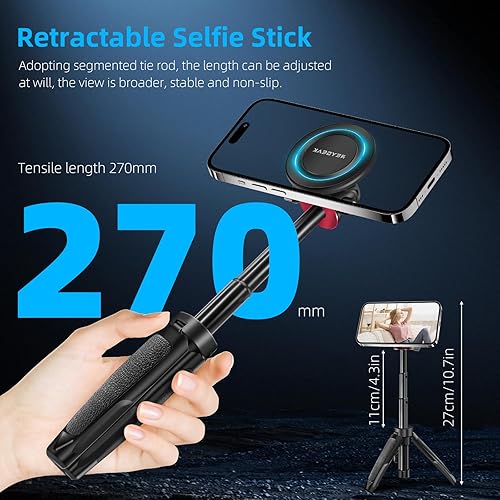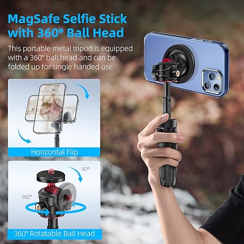 REYGEAK Treppiede Magnetico Compatibile Con MagSafe, Mini Selfie Stick Estensibile a 360° Testa a Sfera per iPhone 15/14/13/12 Pro Mini/Plus/Max