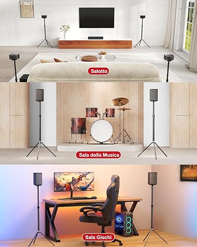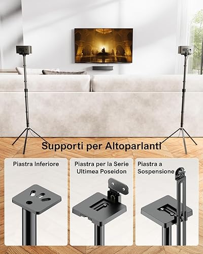 ULTIMEA Supporto per Altoparlanti Regolabile in Altezza, Nero, da 62 cm a 93 cm per Altoparlanti Surround, con una Capacità di Carico Fino a 3 kg