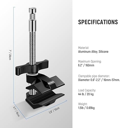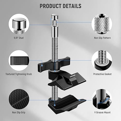 NEEWER 6' Morsa a Ganascia con Perno 5/8', Morsetto per Presa del Tubo in Acciaio con Cuscinetti in Gomma per Stand C, Anti Torsione, Maniglia Rotante Blocco Facile per Softbox Luce Video LED, UA040