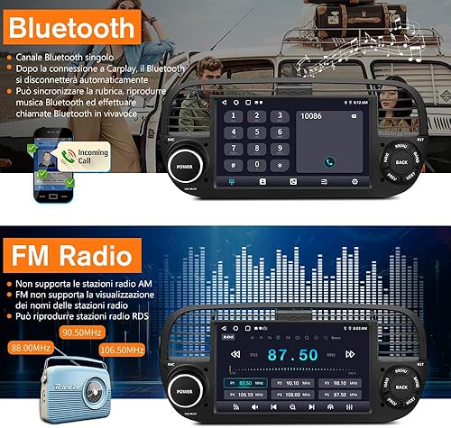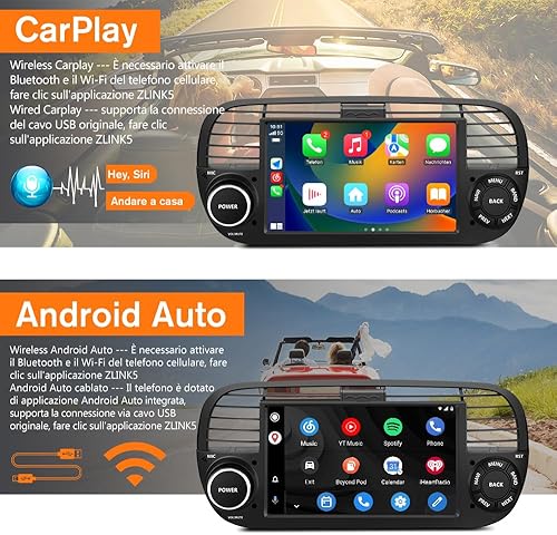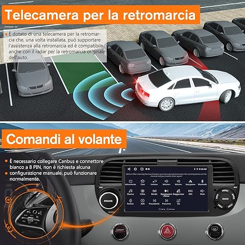 Autoradio per Fiat 500 (2007-2015) Android 13 Car Radio (2+64GB) con CarPlay Android Auto GPS BT Comandi al Volante FM RDS + Fotocamera Posteriore (Nero)