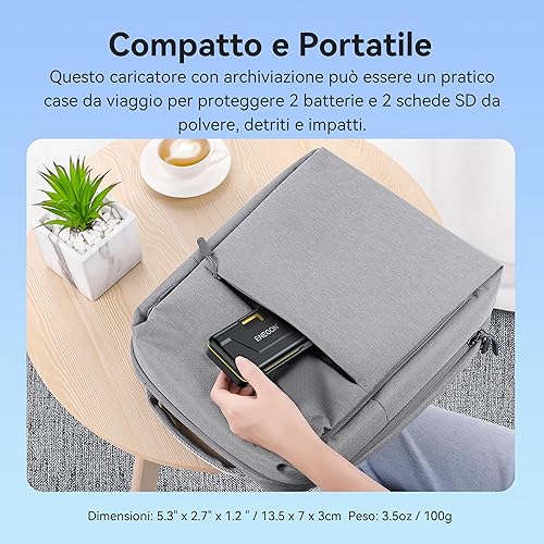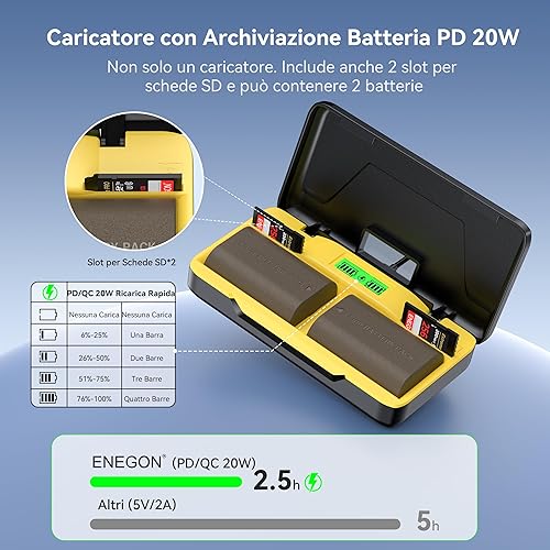 ENEGON Caricabatterie Veloce LP-E6/LP-E6N 20W, Doppio Alloggiamento (2x 2000mAh), Compatibile con Canon EOS 5D, 5D Mark II, 6D, 7D, 60D, 70D, 80D, 90D, XC10, XC15, Display LCD
