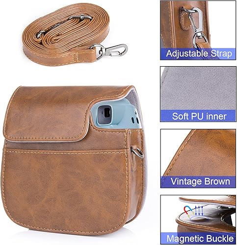 Diealles Mini 8/ Mini 8s/ Mini 9 Custodia con Cinghia di Spalla, Adatto a Fujifilm Mini 8/ Mini 8s/ Mini 9 Fotocamera Istantanea (Marrone)