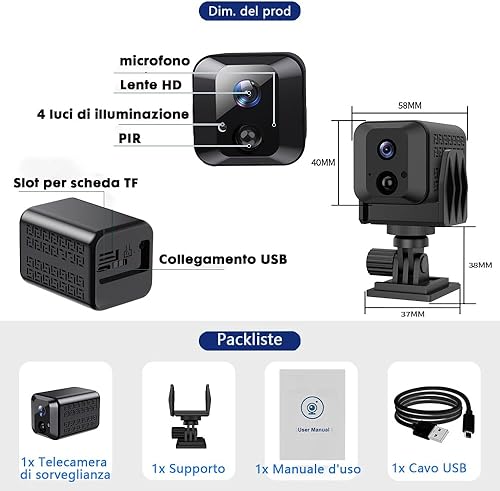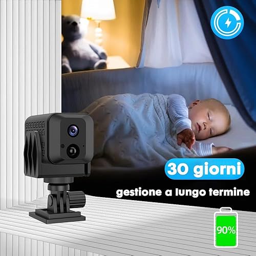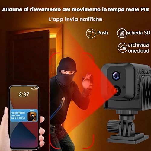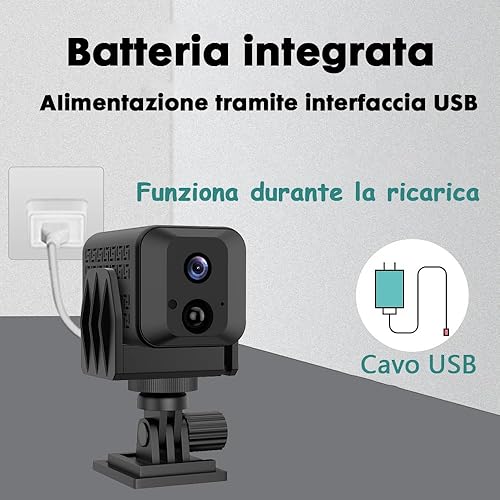 Mini fotocamera, telecamera di sorveglianza WiFi 4K HD con batteria integrata, piccola fotocamera con sensore di movimento, visione notturna, trasmissione in tempo reale e archiviazione cloud