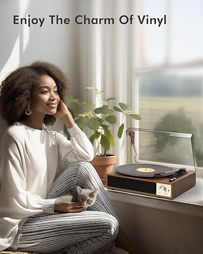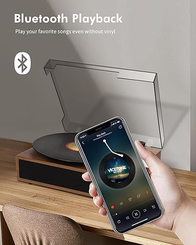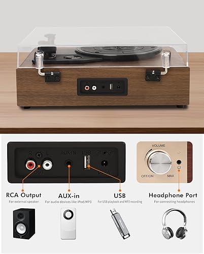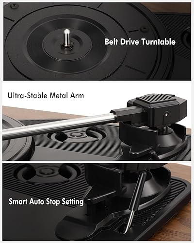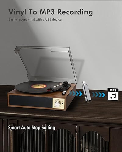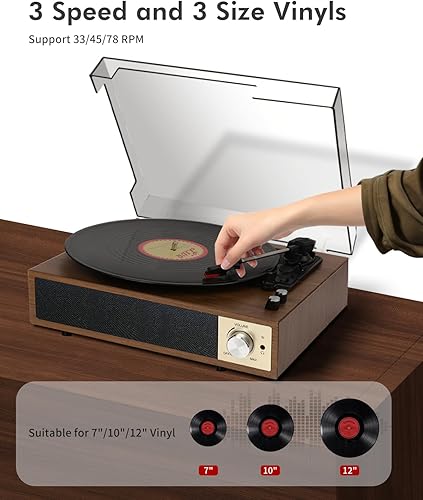 Giradischi Vinile Bluetooth Vintage, Lettore Vinili 3 Velocità (33/45/78 RPM) con 2 Altoparlanti Stereo, Codificatore Digitale, Supporto LP/Aux IN/RCA/BT, Marrone Naturale