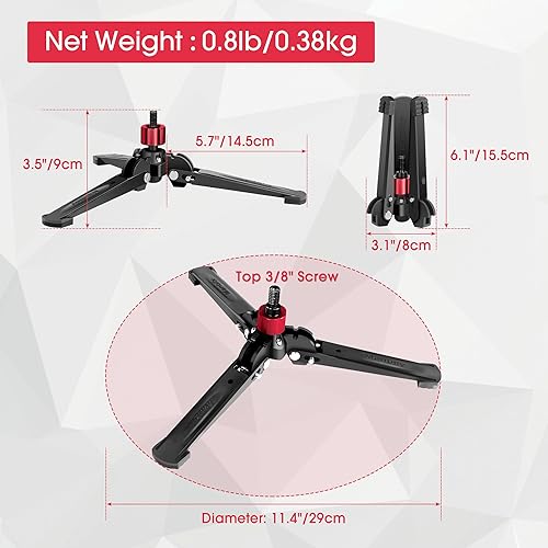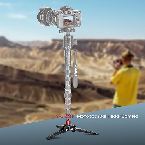 Manbily Mini treppiede base per monopiede, 3/8' vite da tavolo treppiedi con tre piedi, supporto monopiede, da viaggio per fotocamera DSLR a testa fluida a sfera, inclinazione di 20° e rotazione di