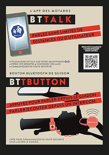 Midland BTT Button Pulsante Bluetooth da Moto per BTTalk App, Accessorio per Qualsiasi Marca di Interfono, Comunica in Sicurezza Senza Togliere le Mani dal Manubrio